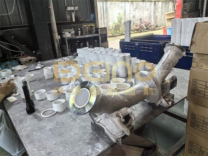 :Cada producto pasa pruebas de densidad, dureza, resistencia de unión y resistencia al desgaste antes de la entrega.La tubería revestida con manguito cerámico y la tubería resistente a la abrasión se empaquetan utilizando embalaje de esqueleto de acero con extremos de plástico en ambos extremos para evitar la entrada de polvo y lluvia en la tubería. Esto garantiza la belleza del producto y asegura que la tubería interior esté protegida durante el transporte.